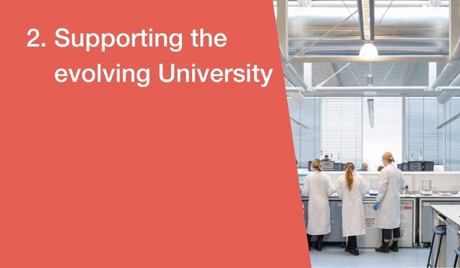 - establish new centres and teaching spaces for nursing, and the built environment, to accommodate these developing subject areas