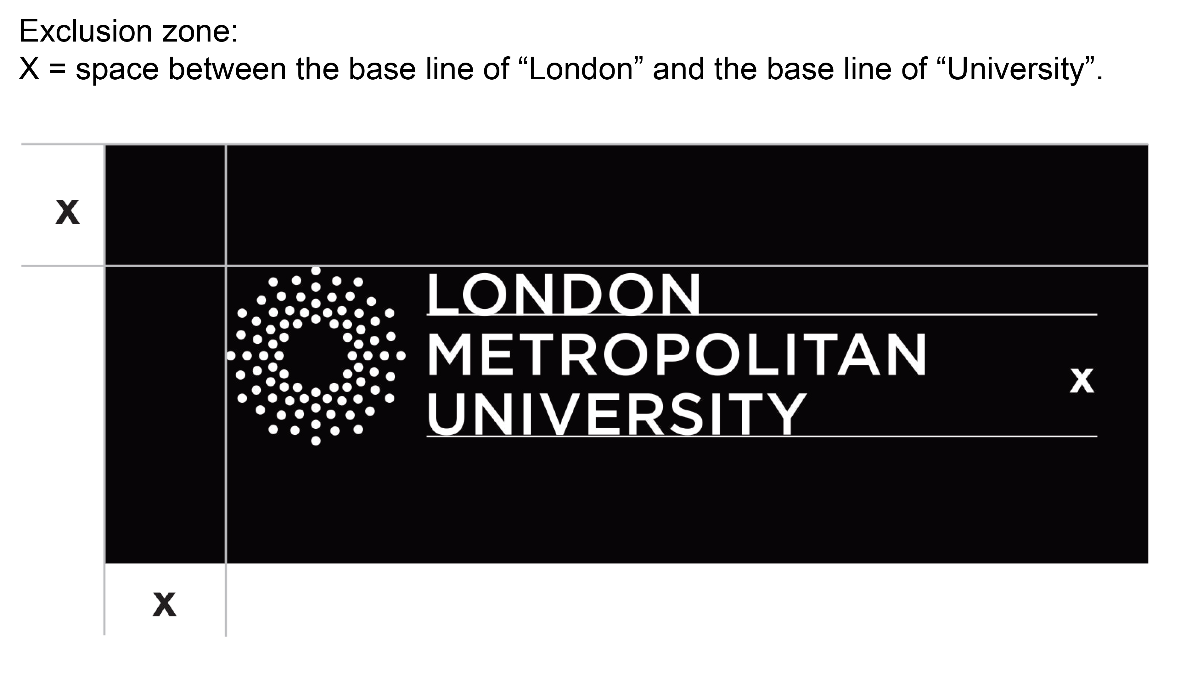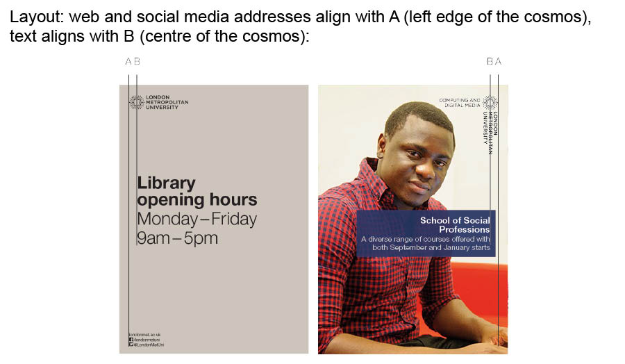 It is important for the use of our London Met and sub-brand logos to be used consistently to ensure a professional look and feel. For this reason the cosmos and accompanying text should follow these precise rules about sizing, positioning and design layout.
