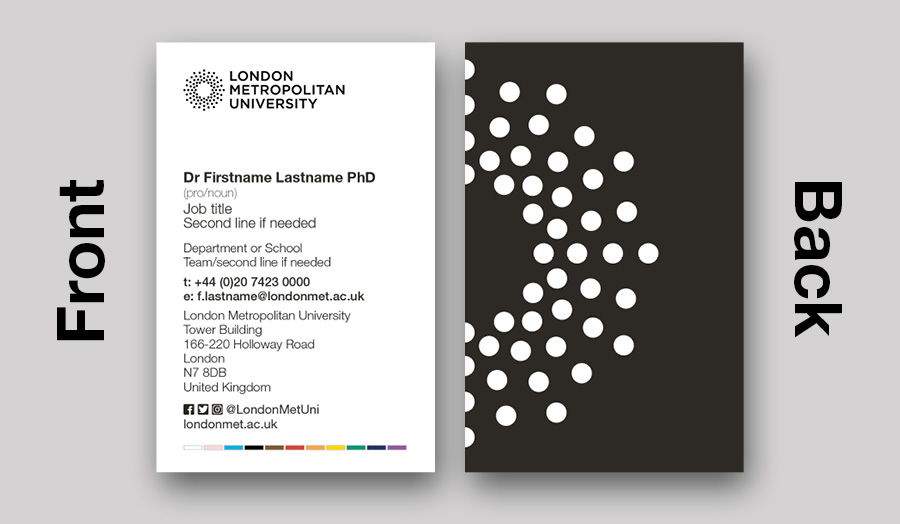 The stationery we use sets out the relationship between individual employees and London Metropolitan University. Our business card template includes: