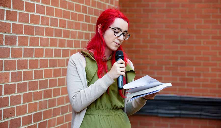 “The collaboration represents a transformation of the students’ work and practice,” said Angharad Lewis, lecturer in Visual Communication who co-lead the project. “The writing students’ words are presented on a stage beyond the word-processing document or notebook— they are crafted, duplicated, reproduced and distributed. The graphic design and illustration students’ skills and creativity are stretched by the experience of working with original content and a ‘live’ relationship. Above all, the work of both groups of students is delivered into the hands, eyes and ears of an audience that, through the pages of this printed book, travels beyond the expected confines of the academic setting”.