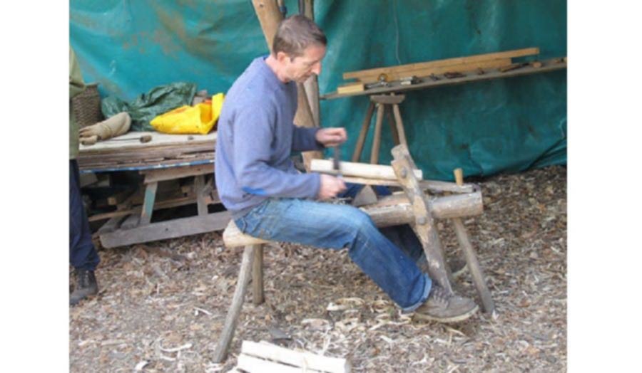 Bodging, or green woodworking is working with fresh cut timber with hand tools in the woods. It's a very old English furniture making tradition most remembered for Windsor chairs but also producing lots of agricultural tools, ladders, baskets and on a large scale, timber framed buildings.