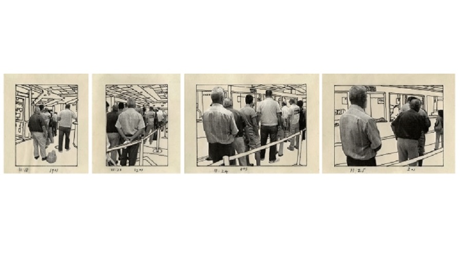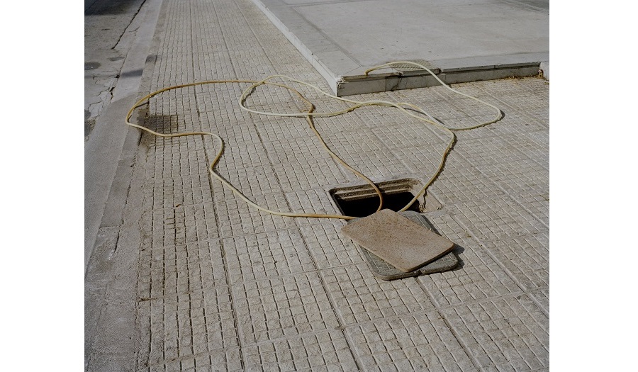 Each participating artist in Concrete Matters presents their own perspective of this relationship. For instance, presenting select works from her series Intermediate Times (2007-2011), Nina Pappa’s mixed media works are exemplary of the shaping of human identity through extended interaction with urban spaces, displaying transitional places in which we wait, such as train stations and waiting rooms. Compatibly, photographer Georgia Metaxas will display works from the series, In Transit NYC (2008), depicting how frequented urban spaces become part of one’s identity. Central Saint Martins graduate Nikolas Ventourakis will also ask the viewer to question their own relationship to the urban landscape in documentary photography through this works, Billboard I (2013) and Hole in the Ground (2013).