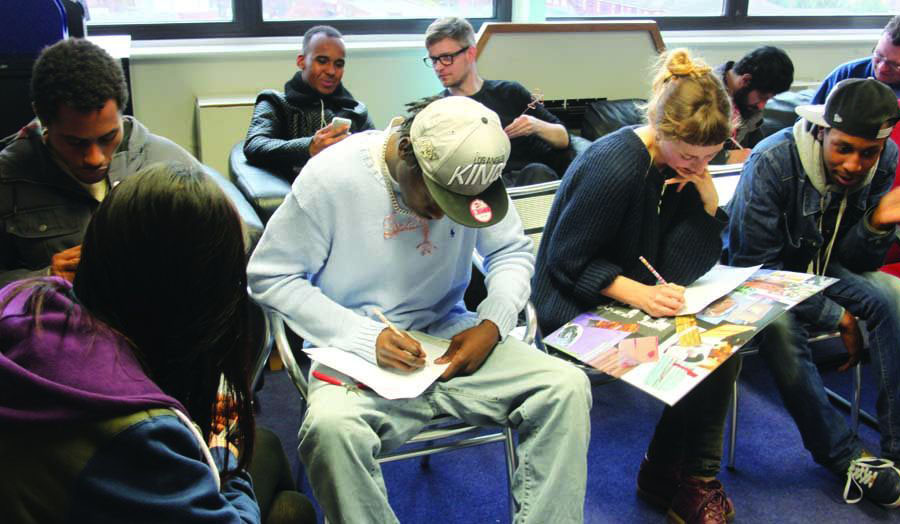 The second workshop was held at the Cass in Aldgate. London Met Widening Participation and the Extended Degree programme introduced ‘Accessing the Cass Faculty of Art, Architecture and Design’. Jewellery and Silversmithing students shared print making techniques, and all participants tested these together in the studio. Cass students presented models of their proposals for Information Points, getting valuable feedback from the YMCA Clients.