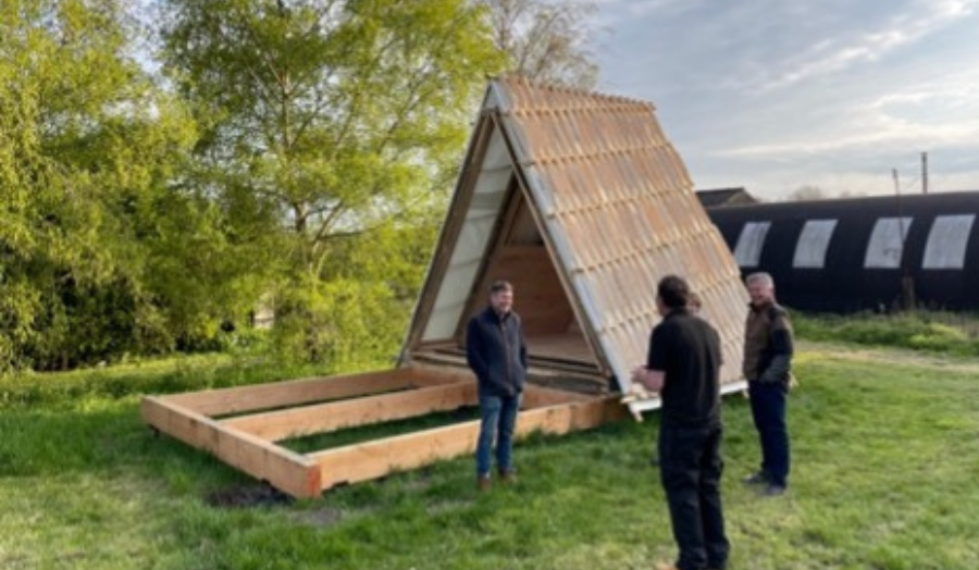 Use of locally sourced coppiced timber promotes regional biodiversity, woodland health, a sustainable local economy and carbon capture and storage. The A-frame design of the cabin facilitated minimal processing steps, reduced cost and increased speed of construction. The result is a novel and sustainable SIPS building system made from local hardwood that can be prefabricated, assembled/disassembled and re-used as part of a regenerative circular economy.